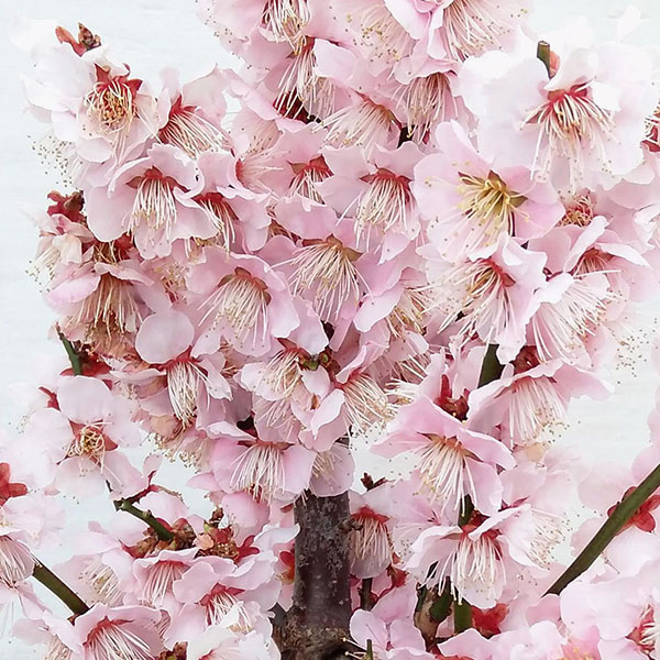 早春の花木花木 庭木の苗/ハナウメ(花梅):乙姫(オトヒメ)盆栽仕立て4号鉢植えハナウメは、香りのよい花が早春から春へ、一輪また一輪と咲くゆかしさがうれしい花木です。 栽培が容易で、木の寿命が長く、古木になるほど味わいが出ます。 乙姫は明るいピンクの八重咲きで早咲きの品種です。 タイプバラ科の耐寒性落葉高木栽培適地北海道南部以南植え時12月〜3月樹高3〜10m開花1月〜2月鉢植えの花梅の栽培方法:置き場所は日当たり良く風のあまり当たらない戸外が適しています。 水切れさせないよう注意し、土の表面が乾いたらたっぷり水やりします。 梅は枝がよく伸びるので、花後すぐに「花後剪定」をします。 伸びている枝の緑の部分の下方の芽を残して、枝を短めに切り詰めます。 毎年繰り返して形良く扇形に広がった樹形を作ります。 花後の4月半ば〜5月、収穫後の7月はじめ、12月に根元に肥料を施します。 お届けする苗は4号(直径12cm)鉢植えです。 樹高や樹形は個体差があります。 お届け時期により開花後となる場合がございます。 写真はイメージです。 ハナウメ(花梅):乙姫(オトヒメ)盆栽仕立て4号鉢植えの栽培ガイド花梅(ハナウメ)花桃(ハナモモ)木瓜(ボケ)の育て方 花木 庭木の苗/ハナウメ(花梅):乙姫(オトヒメ)盆栽仕立て4号鉢植え 1,632 ~