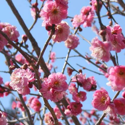 濃紅色八重・極早咲き人気品種 早春の花木花木 庭木の苗/ハナウメ(花梅):八重寒紅(ヤエカンコウ)盆栽仕立て4号鉢植え盆栽仕立ての花梅です。 香りのよい花が早春から春へ、一輪また一輪と咲くゆかしさがうれしい花木です。 栽培が容易で、木の寿命が長く、古木になるほど味わいが出ます。 八重寒紅は濃い紅色の花で、八重咲きの中輪品種です。 野梅性で、ごく早咲きです。 鉢植えに向く品種。 タイプ:バラ科の耐寒性落葉高木栽培適地:北海道南部以南植え時:12月〜3月樹高:5〜10m開花:1月〜2月用途:庭植え、鉢植え栽培方法:戸外の日当たり良く風のあまり当たらない場所が適しています。 庭植えの場合は、腐葉土や元肥をすきこんで植え付けてください。 鉢植えで管理する場合は、水切れさせないよう注意し、土の表面が乾いたらたっぷり水やりします。 梅は枝がよく伸びるので、花後すぐに「花後剪定」をします。 伸びている枝の緑の部分の下方の芽を残して、枝を短めに切り詰めます。 毎年繰り返して形良く扇形に広がった樹形を作ります。 花後の4月半ば〜5月、収穫後の7月はじめ、12月に根元に肥料を施します。 お届けする苗は4号(直径12cm)鉢植えです。 樹高や樹形は個体差があります。 お届け時期により開花後となる場合がございます。 写真はイメージです。 ハナウメ(花梅):八重寒紅(ヤエカンコウ)盆栽仕立て4号鉢植えの栽培ガイド花梅(ハナウメ)花桃(ハナモモ)木瓜(ボケ)の育て方 花木 庭木の苗/ハナウメ(花梅):八重寒紅(ヤエカンコウ)盆栽仕立て4号鉢植え 1,632 ~