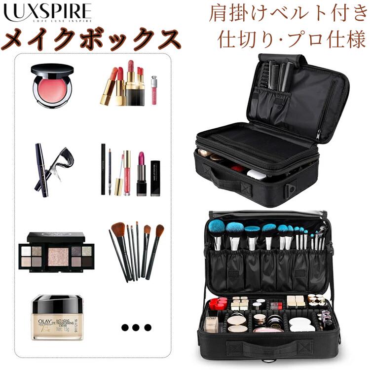 ★10%OFFクーポン 1/20迄★メイクボックス 鏡 肩掛けベルト付き Luxspire コスメボックス 大容量 メイクブラシバッグ 仕切り 化粧ポーチ 衝撃吸収 コスメポーチ メイクポーチ プロ用 持ち運び 防塵 置き方調整可能 通勤 出張 旅行 化粧品収納 収納ケース 40*29*14CM