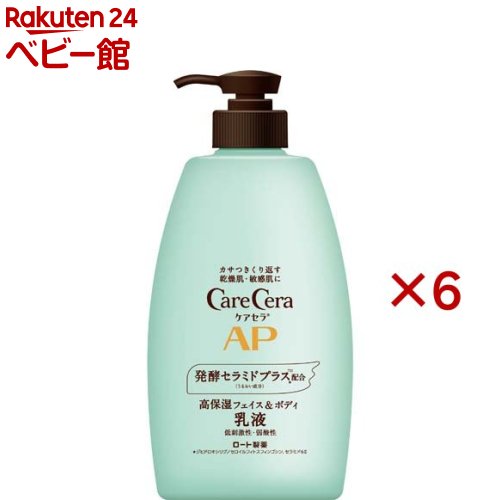 お店TOP>ケアセラ APフェイス&ボディ乳液 大容量 (400ml×6セット)お一人様3セットまで。 商品区分:化粧品【ケアセラ APフェイス&ボディ乳液 大容量の商品詳細】●ボディケア乳液。 ●カサつきや肌荒れをしつこくくり返す乾燥肌へ。 ●肌のセラミドの働きを守り補うセラミドバリアケア。 ●発酵セラミドプラス(うるおい成分)を含む8種の天然型セラミ(うるおい成分)配合。 ●うるおいを与えて肌のバリア機能を補い、角層から深くうるおいみなぎる健やかな肌へ。 ●なめらかな使い心地で全身にも塗り広げやすく、すーっとなじむ乳液タイプ。 ●発酵セラミドプラス※2(うるおい成分)を含む8種の天然型セラミド※1(うるおい成分)配合。 ●低刺激性・弱酸性。 パラベンフリー。 ●敏感肌にも。 敏感肌の方の協力によるパッチテスト済み。 (すべての方に刺激が起こらないというわけではありません。 )●無香料※1.セラミド1、セラミド2、セラミド3、セラミド6(2)、セラミドEOS、カプロオイルフィトスフィンゴシン、カプロオイルスフィンゴシン、ジヒドロキシリグノセロイルフィトスフィンゴシン※2.セラミド6(2)、ジヒドロキシリグノセロイルフィトスフィンゴシン【販売名】ケアセラ乳液【使用方法】手のひらに適量をとり、顔や体の気になる部分になじませてください。 【成分】水、グリセリン、BG、ワセリン、トリエチルヘキサノイン、ミネラルオイル、ペンチレングリコール、ステアリン酸ソルビタン、ポリソルベート60、ラノリン、セラミド1※1、セラミド2※1、セラミド3※1、セラミド6II※2、セラミドEOS※1、カプロオイルフィトスフィンゴシン※1、カプロオイルスフィンゴシン※1、ジヒドロキシリグノセロイルフィトスフィンゴシン※2、コレステロール、ベヘン酸、塩化Na、塩化K、ピリドキシンHCl、セリン、オリゴペプチド-24、ジメチコン、セタノール、ステアリルアルコール、トコフェロール、カルボマー、EDTA-2Na、TEA、セテアレス-25、PEG-60水添ヒマシ油、ベヘニルアルコール、フェノキシエタノール※1天然型セラミド※2発酵セラミドプラス【注意事項】・傷、はれもの、しっしん等、異常のある部位には使用しないこと。 ・肌に異常が生じていないかよく注意して使用すること。 使用中、又は使用後日光にあたって、赤み、はれ、かゆみ、刺激、色抜け(白斑等)や黒ずみ等の異常が現れた時は使用を中止し、皮フ科専門医等へ相談すること。 そのまま使用を続けると症状が悪化することがある。 ・目に入らないよう注意し、入った時はすぐに洗い流すこと。 なお、異常が残る場合は、眼科医に相談すること。 ・高温又は低温の場所、直射日光を避け、乳幼児の手の届かない所に保管すること。 【原産国】日本【ブランド】ケアセラ【発売元、製造元、輸入元又は販売元】ロート製薬※説明文は単品の内容です。 商品に関するお電話でのお問合せは、下記までお願いいたします。 お客様サポートデスク受付時間 9:00‐18:00(土、日、祝日を除く)東京 03-5442-6020:大阪 06-6758-1230リニューアルに伴い、パッケージ・内容等予告なく変更する場合がございます。 予めご了承ください。 ・単品JAN:4987241192687ロート製薬544-8666 大阪市生野区巽西1-8-1※お問い合わせ番号は商品詳細参照広告文責:楽天グループ株式会社電話:050-5306-1825 ケアセラ APフェイス&ボディ乳液 大容量(400ml×6セット)【ケアセラ】 14,157 ~
