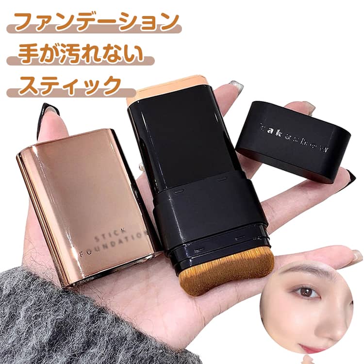 ファンデーション スティック 2本セット スティックファンデーション 手が汚れない 極細毛ブラシ付き 毛穴 カバー 韓国コスメ スティックファンデ 2in1 高密着 崩れにくい 化粧下地 時短 メイク ツヤ肌 ナチュラル アイボリー 送料無料 1,760 ~
