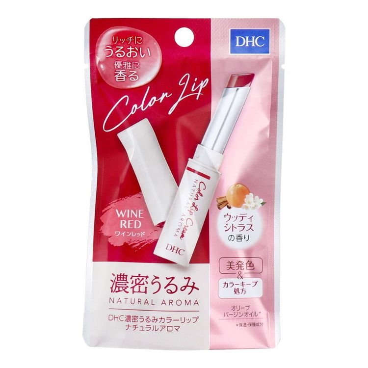 贅沢保湿、鮮やかな色づき天然アロマがやさしく香るカラーリップ。●うるおいオイル配合。オリーブバージンオイル・オリーブスクワラン・ホホバオイル。●美発色&カラーキープ。唇にしっかり密着し、美しい発色が持続。●ウッディシトラスの香り。オレンジ・レモンなどの天然エッセンシャルオイルを使用。●パラベンフリー・天然成分配合。【商品区分】化粧品【成分】トリ(カプリル酸/カプリン酸)グリセリル、ホホバ種子油、キャンデリラロウ、メドウフォ-ム油、リンゴ酸ジイソステアリル、メトキシケイヒ酸エチルヘキシル、ヘキサイソステアリン酸スクロ-ス、オリ-ブ果実油、パラフィン、ヒマシ油、スクワラン、ラノリン、ミツロウ、ホホバエステル、液状ラノリン、t-ブチルメトキシジベンゾイルメタン、トコフェロ-ル、テトラヘキシルデカン酸アスコルビル、フェノキシエタノ-ル、パルミチン酸エチルヘキシル、トリベヘニン、イソステアリン酸ソルビタン、パルミトイルトリペプチド-1、エンピツビャクシン油、オレンジ果皮油、ビタ-オレンジ葉/枝油、ビタ-オレンジ花油、マンダリンオレンジ果皮油、ライム油、レモン果皮油、青1、赤201、赤202、黄4、酸化チタン、ステアリン酸、乳酸【製造販売元】DHC【製造国】日本【内容量】1.5g【注意】・唇に合わないとき、即ち次のような場合には、使用を中止してください。そのまま使用を続けますと、症状を悪化させることがありますので、皮膚科専門医等にご相談されることをおすすめします。(1)使用中、赤み、はれ、かゆみ、刺激等の異常があらわれた場合(2)使用した唇に、直射日光があたって上記のような症状があらわれた場合・傷やはれもの、湿疹等、異常のある部位には使用しないでください。・妊娠中の方や乳幼児への使用は控えてください。・スティックを出しすぎると折れる場合がありますので、注意してください。★保管上の注意・使用後は必ずしっかり蓋をしめてください。・直射日光のあたる場所、極端に高温多湿の場所には保管しないでください。・乳幼児の手の届かない所に保管してください。【送料について】北海道、沖縄、離島は送料を頂きます。 DHC 濃密うるみ カラーリップ ナチュラルアロマ ワインレッド ウッディシトラスの香り 1.5g【ポイント10倍】 1,163 ~
