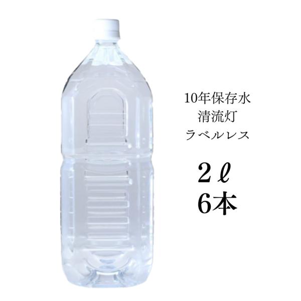 清流灯 長期保存水 10年 送料無料 2L 6本入り 清流灯 ラベルレス 湧水 備蓄 非常用 保存用 ペットボトル 純天然アルカリ ミネラル水 軟水 防災