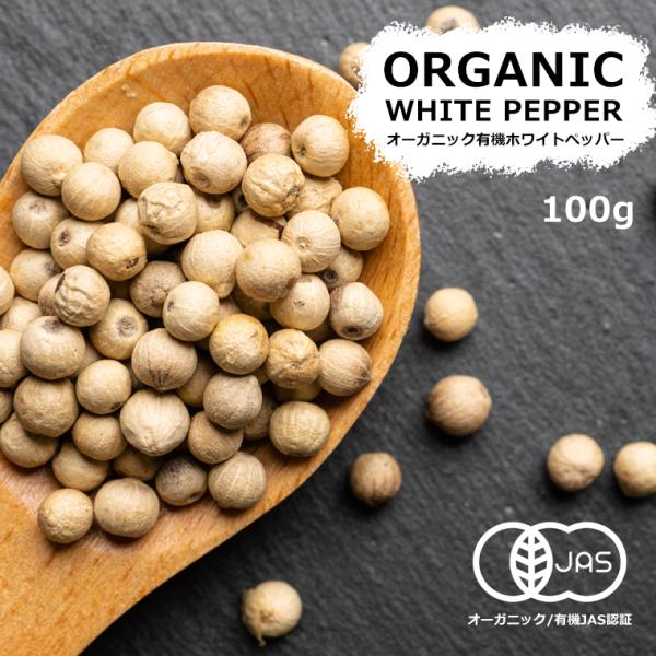 オーガニック ホワイトペッパー ホール 100g 有機JAS認証 最高級 スリランカ産 ホワイトペパー ホール 有機 オーガニック 白胡椒 白こしょう 無農薬 スパイス