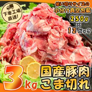 ふるさと納税 下妻市 [下妻工場直送]国産豚肉こま切れ3kg(250g×12パック) 10000 円〜