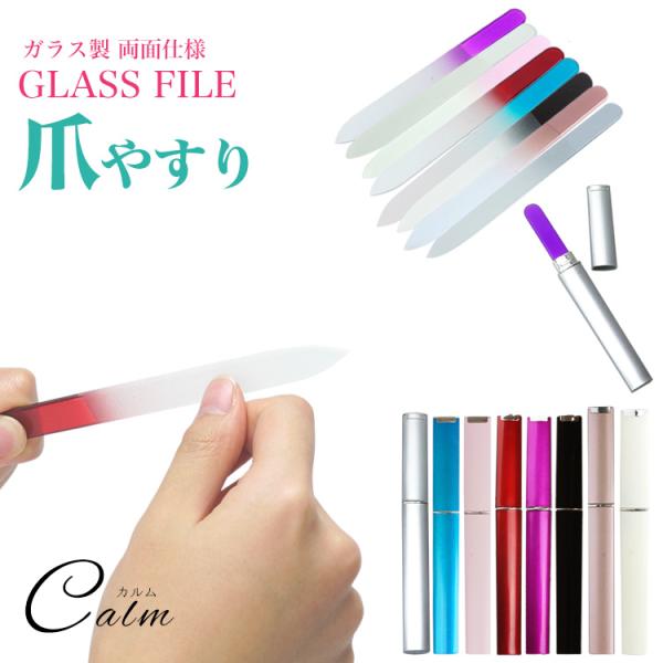 爪やすり ガラス製 つめやすり 爪磨き 両面 ネイルケア マニキュア 手入れ ネイル 爪 収納ケース 付属 かわいい