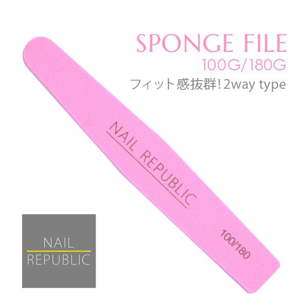 スポンジファイル ネイルファイル 100/180 1本 NAILREPUBLIC ネイルスポンジファイル ネイルケア 爪磨き 下処理 爪やすり 甘皮 新品 ジェルネイル