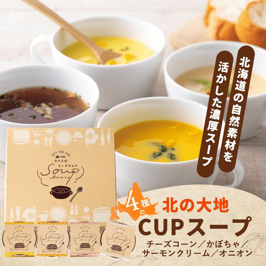 ●セット内容/●スープ4種(北海道産チーズコーン・北海道産かぼちゃ各16.5┣g┫、北海道産サーモンクリーム17.2┣g┫、北海道産オニオン7┣g┫)×各1、カップ付き(紙製)●箱サイズ/19×18.7×6.5cm●賞味期間/常温90日 北の大地4種のCUPスープ 1,296 ~