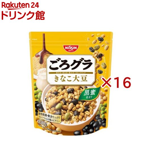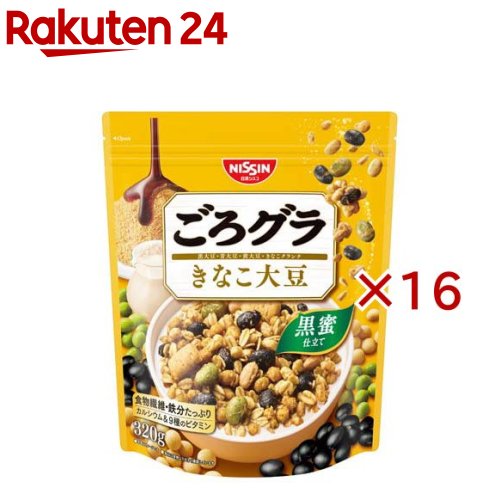 お店TOP>フード>穀物・豆・麺類>シリアル類>グラノーラ・クランチ>ごろグラ きなこ大豆 (320g×16セット)【ごろグラ きなこ大豆の商品詳細】●具材が大きくて多い、アガるおいしさ!●贅沢なごろっと大豆とザクザク食感のきなこクランチが入った、黒蜜仕立てのグラノーラ【品名・名称】シリアル【ごろグラ きなこ大豆の原材料】オーツ麦フレーク(オーストラリア製造又はイギリス製造又はその他)、砂糖、小麦シリアルパフ、きな粉シリアルパフ(コーングリッツ、小麦ふすま、きな粉、小麦粉)、黒大豆、植物油脂、青大豆、きな粉クランチ(小麦粉、砂糖、ショートニング、きな粉、でん粉、食塩)、きな粉、大豆、水溶性食物繊維、デキストリン、しょうゆ、乳糖、黒糖蜜/香料、炭酸カルシウム、ビタミンC、乳化剤、酸化防止剤(ビタミンE、ビタミンC)、ピロリン酸鉄、ナイアシン、カゼインNa、カラメル色素、パントテン酸カルシウム、ビタミンB6、ビタミンB1、葉酸、ビタミンB2、ビタミンD、ビタミンB12【栄養成分】1食分(40g)当たりエネルギー(kcal):169、たんぱく質(g):5.4、脂質(g):5.4、コレステロール(mg):0、炭水化物(g):27.4、-糖質(g):22.8、-食物繊維(g):4.6、食塩相当量(g):0.16、カルシウム(mg):51、鉄(mg):2.6、ナイアシン(mg):4.4、パントテン酸(mg):0.60、ビタミンB1(mg):0.26、ビタミンB2(mg):0.10、ビタミンB6(mg):0.40、ビタミンB12(μg):0.30、ビタミンC(mg):24、ビタミンD(μg):3.0、葉酸(μg):102、リン(mg):91、カリウム(mg):198【アレルギー物質】小麦・乳成分・大豆【保存方法】直射日光・高温多湿をおさけください。 【原産国】日本【発売元、製造元、輸入元又は販売元】日清シスコ※説明文は単品の内容です。 リニューアルに伴い、パッケージ・内容等予告なく変更する場合がございます。 予めご了承ください。 ・単品JAN:4901620161170日清シスコ110-0015 東京都台東区東上野4-24-11 グローバル・ワン上野11階0120-937-023広告文責:楽天グループ株式会社電話:050-5577-5043[インスタント食品] ごろグラ きなこ大豆(320g×16セット) 9,653 ~