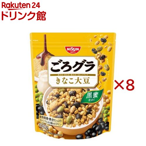 お店TOP>フード>穀物・豆・麺類>シリアル類>グラノーラ・クランチ>ごろグラ きなこ大豆 (320g×8セット)【ごろグラ きなこ大豆の商品詳細】●具材が大きくて多い、アガるおいしさ!●贅沢なごろっと大豆とザクザク食感のきなこクランチが入った、黒蜜仕立てのグラノーラ【品名・名称】シリアル【ごろグラ きなこ大豆の原材料】オーツ麦フレーク(オーストラリア製造又はイギリス製造又はその他)、砂糖、小麦シリアルパフ、きな粉シリアルパフ(コーングリッツ、小麦ふすま、きな粉、小麦粉)、黒大豆、植物油脂、青大豆、きな粉クランチ(小麦粉、砂糖、ショートニング、きな粉、でん粉、食塩)、きな粉、大豆、水溶性食物繊維、デキストリン、しょうゆ、乳糖、黒糖蜜/香料、炭酸カルシウム、ビタミンC、乳化剤、酸化防止剤(ビタミンE、ビタミンC)、ピロリン酸鉄、ナイアシン、カゼインNa、カラメル色素、パントテン酸カルシウム、ビタミンB6、ビタミンB1、葉酸、ビタミンB2、ビタミンD、ビタミンB12【栄養成分】1食分(40g)当たりエネルギー(kcal):169、たんぱく質(g):5.4、脂質(g):5.4、コレステロール(mg):0、炭水化物(g):27.4、-糖質(g):22.8、-食物繊維(g):4.6、食塩相当量(g):0.16、カルシウム(mg):51、鉄(mg):2.6、ナイアシン(mg):4.4、パントテン酸(mg):0.60、ビタミンB1(mg):0.26、ビタミンB2(mg):0.10、ビタミンB6(mg):0.40、ビタミンB12(μg):0.30、ビタミンC(mg):24、ビタミンD(μg):3.0、葉酸(μg):102、リン(mg):91、カリウム(mg):198【アレルギー物質】小麦・乳成分・大豆【保存方法】直射日光・高温多湿をおさけください。 【原産国】日本【発売元、製造元、輸入元又は販売元】日清シスコ※説明文は単品の内容です。 リニューアルに伴い、パッケージ・内容等予告なく変更する場合がございます。 予めご了承ください。 ・単品JAN:4901620161170日清シスコ110-0015 東京都台東区東上野4-24-11 グローバル・ワン上野11階0120-937-023広告文責:楽天グループ株式会社電話:050-5577-5043[インスタント食品] ごろグラ きなこ大豆(320g×8セット) 4,875 ~