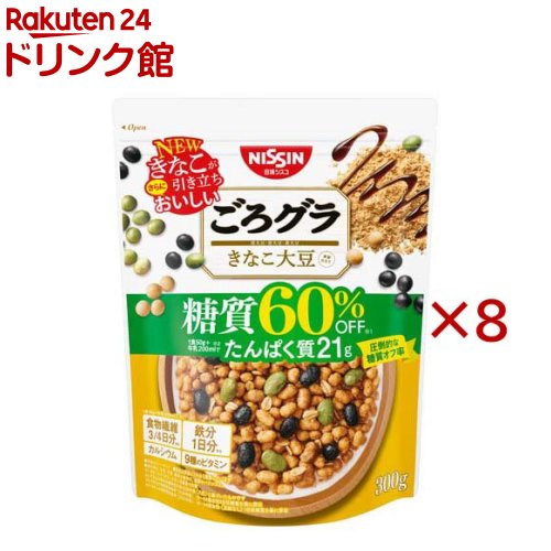 お店TOP>フード>穀物・豆・麺類>シリアル類>グラノーラ・クランチ>ごろグラ 糖質60%オフ きなこ大豆 (300g×8セット)【ごろグラ 糖質60%オフ きなこ大豆の商品詳細】●このおいしさで、圧倒的糖質オフ!●贅沢なごろっと大豆が入った、黒蜜仕立ての糖質60%※オフグラノーラ※「ごろグラきなこ大豆」と同重量で比較【品名・名称】シリアル【ごろグラ 糖質60%オフ きなこ大豆の原材料】濃縮大豆たんぱくパフ(濃縮大豆たんぱく粉(大豆(中国産)、オーツフラワー、小麦粉、その他)、水溶性食物繊維、黒大豆、オーツ麦フレーク、植物油脂、大豆たんぱくライ麦パフ(濃縮大豆たんぱく粉、ライ麦粉、その他)、青大豆、砂糖、乳糖、しょうゆ、黒糖蜜)/炭酸カルシウム、香料、ビタミンC、乳化剤、酸化防止剤(ビタミンE、ビタミンC)、甘味料(アセスルファムK、スクラロース)、ピロリン酸鉄、ナイアシン、カラメル色素、パントテン酸カルシウム、ビタミンB6、ビタミンB1、ビタミンB2、葉酸、ビタミンD、ビタミンB12【栄養成分】1食分(50g)当たり/牛乳200mlをかけた場合エネルギー(kcal):177/303、たんぱく質(g):14.9/21.7、脂質(g):7.0/14.8、コレステロール(mg):0/25、炭水化物(g):24.6/34.5、-糖質(g):9.8/19.7、-食物繊維(g):14.8/14.8、食塩相当量(g):0.23/0.44、カルシウム(mg):142/369、鉄(mg):6.5/6.5、ナイアシン(mg):7.0/7.2、パントテン酸(mg):0.85/1.99、ビタミンB1(mg):0.45/0.53、ビタミンB2(mg):0.15/0.46、ビタミンB6(mg):0.60/0.66、ビタミンB12(μg):0.35/0.97、ビタミンC(mg):31/33、ビタミンD(μg):3.5/4.1、葉酸(μg):133/143、リン(mg):245/437、カリウム(mg):565/875【アレルギー物質】小麦・乳成分・大豆【保存方法】直射日光・高温多湿をおさけください。 【原産国】日本【発売元、製造元、輸入元又は販売元】日清シスコ※説明文は単品の内容です。 リニューアルに伴い、パッケージ・内容等予告なく変更する場合がございます。 予めご了承ください。 ・単品JAN:4901620161743日清シスコ110-0015 東京都台東区東上野4-24-11 グローバル・ワン上野11階0120-937-023広告文責:楽天グループ株式会社電話:050-5577-5043[インスタント食品] ごろグラ 糖質60%オフ きなこ大豆(300g×8セット) 4,924 ~