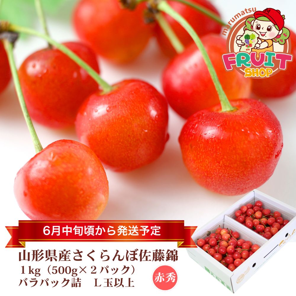 商品内容 産地直送 さくらんぼ佐藤錦をお届け 産地直送 美味しいさくらんぼ佐藤錦をたっぷりお届け致します!発送時期 品種は指定できませんが、その分、朝採りの新鮮なさくらんぼをお届けさせて頂きます! 商品詳細情報 生産元 山形県東根 天童産 品 種 さくらんぼ 佐藤錦・紅秀峰他 内容量 さくらんぼ 1kg/300g 訳あり混合 賞味期限 フルーツなので到着後出来るだけ早めにお召し上がりください。また、大変デリケートなフルーツですので、到着後冷蔵庫に保管して頂くことをオススメしております。 発送方法 クール便で発送致します。 場合によって航空便を利用させて頂きます。 さくらんぼ以外、同梱は出来ません。 日時指定 6月中旬から末頃迄の発送です。 ご注文受付順発送予定 ※天候状態や成長の様子で期間が前後します。 日付指定はお受けできません。予めご了承くださいませ。 送 料 送料無料です ※沖縄・離島へはお届けできません。 ●[カード決済をご利用のお客様へ] 発送後(6月中旬頃)の決済処理となりますので、 ご利用のカードの「有効期限」をご確認の上、ご注文をお願い致します。 ●お客様のご都合や長期ご不在による配達センターでの保存によって傷みが発生した場合の返品 交換の対応はできかねます。 ●納品書 請求書はお送りしておりません。領収書等が必要な場合は備考欄にご記入ください。 ●お客様のご都合により商品のお受け取りができない場合、送料 商品代をご負担いただきます。ご了承の上、ご注文ください。 ●サイズが混合で異なる為、非常に傷みやすくなっております。予めご了承頂ければ幸いです。 ●お届け後はすぐに商品状態をご確認ください。食べられないほどの潰れや傷みがある場合にはすぐにメール、お電話にてご連絡ください。生ものとなっておりますので、商品の保管期間はお届け日当日までとさせていただきます。それ以降ご連絡いただいた場合の保証は致しかねます。 ●キャンセルにつきまして 商品の発送前で有れば、キャンセルをお受けいたします。 商品発送後のキャンセルはお受け出来ませんので、予めご了承ください。 さくらんぼは、非常に繊細な果物でございます。検品を十分にし、万全な状態で出荷しております。果物の性質上、輸送中の振動などで、若干の表面のこすれや果汁漏れがある場合がございます。 何卒、その旨ご理解 ご了承下さいました上でご購入頂きます様、よろしくお願いします。 \2026年産・さくらんぼ佐藤錦!/ 商品説明 日本No.1生産量を誇るサクランボ産地の山形県から 期間・数量限定で美味しい佐藤錦を発送いたします。 産地直送ならではの、ちょっと訳ありでお得なさくらんぼ佐藤錦。 ご家庭で沢山べて頂けるように、たっぷり"1kg"のボリュームで お届けさせて頂きます! 一方、300gの方は【おひとり様】や【少人数のご家庭用】に登場! さくらんぼが食べたいけど、あまりたくさんは食べられない、 という方にピッタリのサイズ感になっております! 再度確認をお願いします! ○ご自宅用での購入をおすすめしております。ご贈答用ではございません。早めの配送をご希望の方や、贈答品でご注文いただくお客様は通常品をお買い求めいただくことをおすすめします。 また、商品は非常に傷みやすい商品ですので、お早めにお受け取りください。 ○粒の大きさはS〜2Lいずれかとなり、当店におまかせいただきます。 ○訳ありのため、色むらがある場合がございます。 ○ナマモノのため、天候等の理由で糖度や酸味は年によって異なる場合がございます。 ○お客様ご都合による不在のため商品に不具合が生じた場合、当店では対応できかねますので予め御了承ください。お届け物は特にご注意ください。 ○配送日時、曜日指定は承っておりません。 荷時には商品のチェックして発送しておりますが、商品の性質上どうしても傷んでしまう可能性がございます。 多少の傷みはご了承頂きます様よろしくお願いいたします。 傷みがひどい場合には対応させていただきますので、当店までお問い合わせください。 配送指定は不可となります。 ご注文時にご指示頂いた場合、出来るだけ希望に沿う形で対応はさせていただきますが、朝摘み産地直送という性質上お約束できないため、誠に申し訳ございませんが予めご了承頂ければ幸いです。 時期がきましたら、改めて当店からメールにてご連絡させて頂きます。 最終的なお届け日はメールにてご確認いただき、お受け取りください。宅配伝票番号も一緒にご案内いたしますので、発送後のお届け時間指定は宅配業者へご依頼くださいませ。 (天候に左右されるため、変更になる場合がございます。予めご了承くださいませ) 昨年大好評だった予約販売を今年も実施させて頂きます。ご予約を頂くことによって、生産農家が見定めた一番美味しいさくらんぼを発送させて頂きます。 ご注文からご到着までお時間を頂いている分、準備・管理・発送に万全の用意をさせて頂きますので、