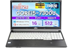 【整備済み品】 富士通 Lifebook A747 15.6型 ノートパソコン 中古/ i5-7300U 第7世代/ MS Office付き Win11 pro/ メモリ16GB, 高速SSD512GB/ Webカメラ搭載/HDMI・VGA・USB3
