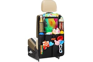 SURDOCA シートバックポケット 車 収納ポケット キックガード 後部座席収納バッグ ベビー用品 子供用品 車内収納袋 11インチtablet収納可能 荷物入れ 防汚 (ブラック, 1枚)