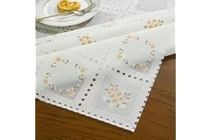 Jinchuan テーブルクロス ビニール 長方形 撥水 防水 アイボリー 白 オシャレ北欧風 田園風 薔薇 刺繍 レース エレガント フローラル 防塵 汚れ さっと拭き取り (100*180cm,タイプ8)