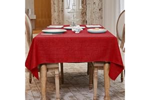 BALCONY & FALCON クリスマステーブルクロス 赤 140x180cm 北欧風 おしゃれ 撥水加工 長方形 布製 類麻 リネン 無地デザイン 防汚 防油 高耐久 上品で ある お手入れ簡単 丸洗いでき 厚手 家庭用 業務用 カフェ レスト
