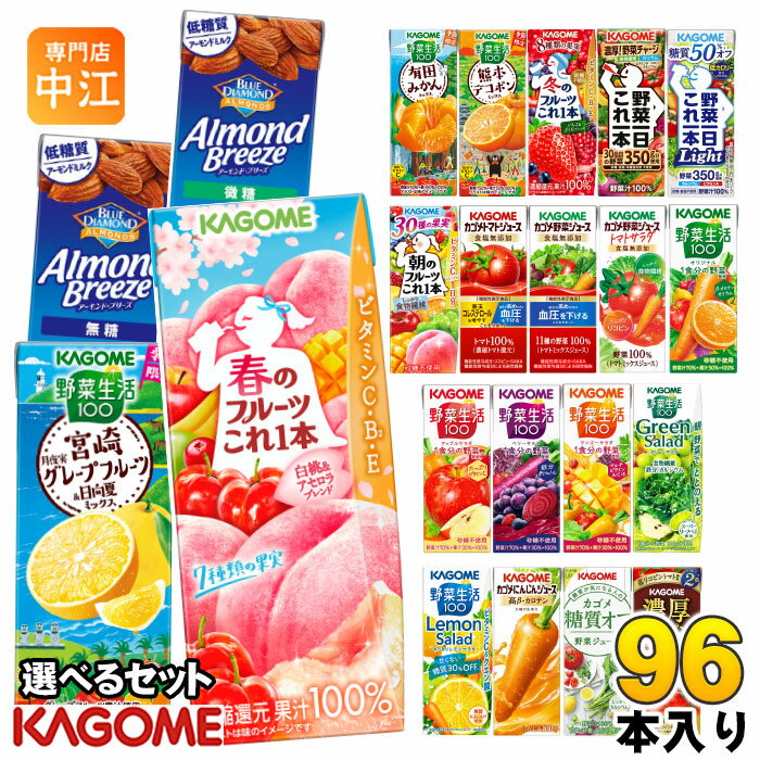 【バリエーションは下記をクリック】・選べる 24本・選べる 48本 (24本×2)・選べる 72本 (24本×3)・選べる 96本 (24本×4)【一個あたり 99円(税込)】カゴメ 紙パックシリーズを4ケース (1ケース24本入を4セット合計96本) お選びいただけます。 ※詰め合わせではありません。 ※「アーモンド・ブリーズ 無糖」、「アーモンド・ブリーズ微糖」 は期間限定で1ケースのみお選びいただけます。 ▼選べる種類▼・アーモンド・ブリーズ 無糖 200ml・アーモンド・ブリーズ 微糖 200ml・野菜生活100 有田みかんミックス 195ml・野菜生活100 熊本デコポンミックス 195ml・野菜生活100 宮崎月夜実グレープフルーツ&日向夏ミックス 195ml・冬のフルーツこれ一本 いちご&ざくろブレンド 200ml・春のフルーツこれ1本 白桃&アセロラブレンド 200ml・野菜一日これ一本 200ml・野菜一日これ一本 Light 200ml・朝のフルーツこれ一本 200ml・トマトジュース 食塩無添加 200ml・野菜ジュース 食塩無添加 200ml・野菜ジュース トマトサラダ 食塩無添加 200ml・野菜生活100 オリジナル 200ml・野菜生活100 アップルサラダ 200ml・野菜生活100 ベリーサラダ 200ml・野菜生活100 マンゴーサラダ 200ml・野菜生活100 グリーンサラダ 200ml・野菜生活100 すっきりレモンサラダ 200ml・にんじんジュース 高β-カロテン 200ml・糖質オフ 野菜ジュース 200ml・濃厚リコピン 195ml◆アーモンド・ブリーズ (無糖/微糖)カリフォルニア契約農園アーモンド使用のアーモンドミルク(※牛乳ではありません)。 アーモンドの香ばしい香りとコクがありつつ、後切れの良い味わいをお楽しみ頂けます。 ◆野菜生活100 有田みかんミックス芳醇な甘さとまろやかなコクのある和歌山県有田みかんの味わいの野菜&果実100%ミックスジュース。 ◆野菜生活100 熊本デコポンミックス上品な甘さが特徴の熊本県産デコポンの味わいの野菜・果実100%ミックスジュースです。 ◆野菜生活100 宮崎月夜実グレープフルーツ&日向夏ミックス宮崎県産の甘味と酸味のバランスがよい月夜実と、ほんのりとした甘味と爽やかな酸味の日向夏の味わいに仕上げた野菜&果実100%ジュースです。 ◆冬のフルーツこれ一本 いちご&ざくろブレンドいちごとざくろ等、8種類の果実の甘酸っぱい味わい。 ◆春のフルーツこれ1本 白桃&アセロラブレンド白桃のまろやかな甘みと、アセロラの甘酸っぱさを楽しみながら、ビタミンC・B2・Eがたっぷり摂れる春限定の100%果実ミックスジュースです。 ◆野菜一日これ一本30品目の野菜350g分を使用した野菜汁100%ジュースです。 砂糖や香料、栄養強化剤不使用。 ◆野菜一日これ一本 Light30品目の野菜350g分を使用した糖質50%オフの野菜ミックス濃縮ジュースです。 すっきりとしたトマトのおいしさを感じられます。 ◆朝のフルーツこれ一本朝にうれしい健康果実30品目を使用。 ビタミンC・ミネラル(カリウム)やクエン酸が含まれています。 ◆トマトジュース 食塩無添加(機能性表示食品)本品にはリコピンとGABAが含まれます。 血中コレステロールが気になる方や血圧が高めの方にお勧めです。 ◆野菜ジュース 食塩無添加(機能性表示食品)本品にはGABAが含まれます。 11種の野菜を使用した野菜100%ジュースです。 ◆野菜ジュース トマトサラダ 食塩無添加トマト・にんじん・ほうれん草・レタスの4種類の野菜を使用した野菜100%ジュースです。 たっぷりのリコピンと食物繊維が摂れます。 ◆野菜生活100 オリジナル20種類の野菜と3種類の果実を使用。 野菜比率70%でありながらフルーティーなおいしさ。 ◆野菜生活100 アップルサラダ赤ピーマン、ビートなど赤の野菜を含む20種類の野菜と6種類の果実を使用。 野菜比率70%でありながらフルーティーなおいしさ。 ◆野菜生活100 ベリーサラダ紫にんじん、紫キャベツ、紫芋など紫の野菜を含む20種類の野菜と6種類の果実を使用。 野菜比率70%でありながらフルーティーなおいしさ。 ◆野菜生活100 マンゴーサラダ黄にんじん、黄ピーマン、かぼちゃなど黄の野菜を含む20種類の野菜と6種類の果実を使用。 野菜比率70%でありながらフルーティーなおいしさ。 ◆野菜生活100 グリーンサラダスーパーリーフベジであるプチヴェールを配合し、食物繊維・鉄分・カルシウムを摂ることができます。 爽やかな白ぶどうのおいしさと洋なしの豊かな香りに加え、ライムを使用することで後味スッキリ。 ◆野菜生活100 すっきりレモンサラダ糖質30%オフ。 食事にも合うスッキリとした甘くない美味しさです。 ◆にんじんジュース 高β-カロテンにんじんのみで作ったまろやかな味わいで、β-カロテンたっぷり。 にんじん本来のコクが感じられるおいしさです。 ◆糖質オフ 野菜ジュースすっきり飲める、糖質オフ野菜ジュース。 食物繊維・カルシウムが手軽に摂れます。 ◆濃厚リコピン(機能性表示食品)完熟トマトをぎゅっと濃縮したトマト100%飲料です。 【広告文責】 株式会社ナカヱ 050-3786-3286【メーカー名】 カゴメ株式会社【製造国】 日本製【商品区分】 機能性表示食品【変更事項】ページリニュ