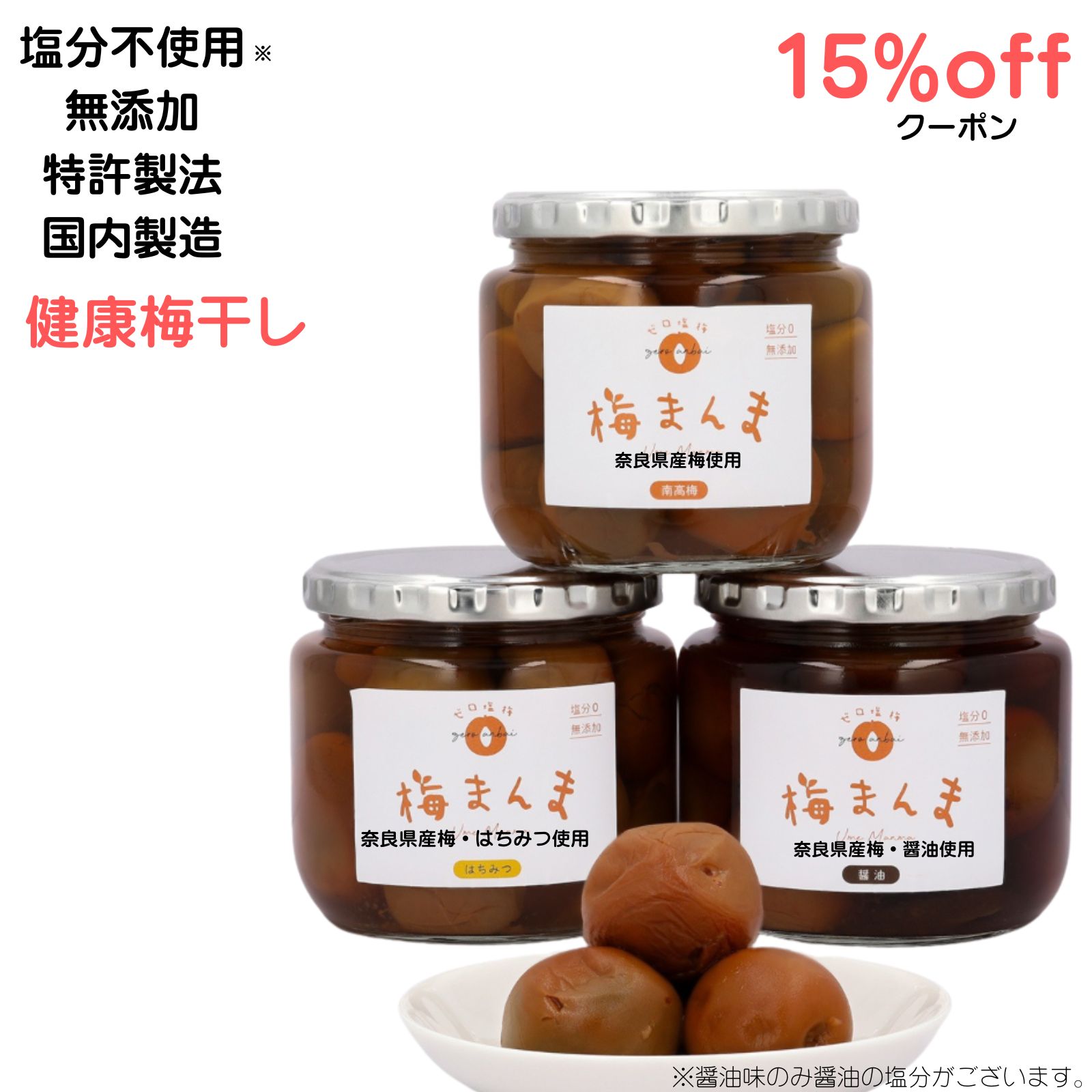 商品情報zeroanbai梅まんまはちみつ400g■名称 ゼロ塩梅まんまはちみつ■内容量 400g■賞味期限:180日■保存方法 開封後、冷蔵庫に保存して、なるべくお早めにお召し上がりください。 ■原材料 南高梅(奈良県産)蜂蜜(奈良県産)■ 製造者 株式会社健康食彩研究所奈良県大和高田市片塩町16−6※ 容器の中に、茶色い木の皮のようなものが混入してる場合がございますが、梅特有のなり口のホシ(軸)ですので、自然のものですので、ご安心してお召し上がりください。 ※ 弊社の商品は、なるべく人の手を加えず、自然に近い加工法です。 化学的なものを入れずに加工しております。 商品に梅の軸が混入している場合がございますが、ご理解いただきますようよろしくお願い致します。 ※ 特許加工の梅は、とても柔らかいですので、皮が破れている場合がございます。 ご了承ください。 配送についてゆうパックで発送いたします。 午後1時までにご注文が完了した商品は、当日発送いたします。 午後1時を過ぎてご注文完了の場合は、翌日発送となります。 また、日にち指定、時間指定をご希望の場合は、必ずご記入漏れのないようにお願いします。 【15%OFFクーポン】無塩梅干し 塩分ゼロ梅 減塩 無添加梅干し 南高梅 国内産 ゼロ塩梅梅まんまはちみつ 80g 180g 400g ゼロ塩梅梅まんまはちみつ400g 健康梅干し!特許製法で無添加!塩分完全0を実現!新感覚南高梅干し!梅そのままをギュッと!詰め込みました。 ほのかなはちみつの味 梅干しなのに塩のないはちみつの梅とても美味しいです。 今までに食べたことのない梅干しを是非!最近、塩分の取り過ぎを気にされている方にも安心して召し上がっていただけます。 添加物などを気にされている方にも、防腐剤、化学調味料、香料や着色料など体に悪いものは、一切使用しておりません。 安全安心をお手元へお届けいたします。 5