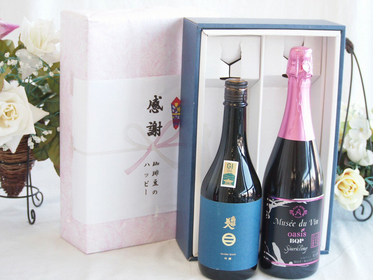 贈り物ギフトセット用として賜らせて頂きます。 熨斗賜ります。(熨斗表書き例:お中元、お歳暮、内祝いなど お名前例:贈り物本舗じざけや) ギフトカードメッセージ賜ります。 南部美人吟醸(なんぶびじん ぎんじょう)は、上品な香りと綺麗な後味が特徴で、精米歩合60%の高品質な米と、折爪馬仙峡の伏流水を使用しています。 丁寧な低温発酵を行い、丹精込めて仕込まれた日本酒で、全国新酒鑑評会でも金賞を受賞しています。また、南部美人は伝統を守りつつも新しい技術や取り組みを積極的に行っており、自社製品を海外にも輸出しています。感謝の贈り物ボックス 上品な香り南部美人と国産ワインセット(MdV オアシス ブラッククイーンピンクロゼスパークリングワイン辛口(長野県)750ml日本酒南部美人吟醸 (岩手県)720ml