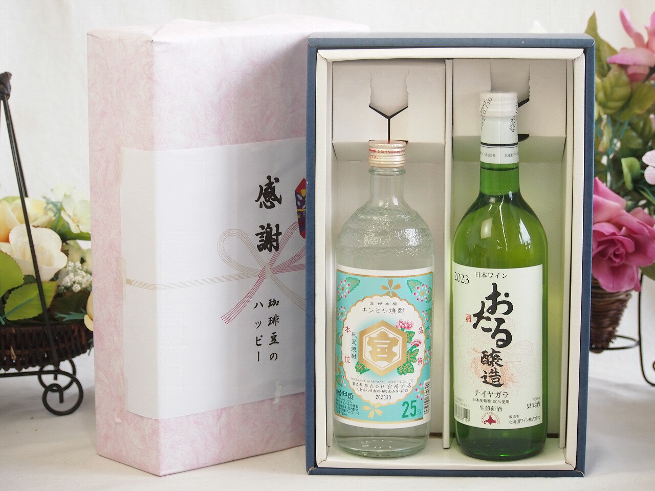 キンミヤ焼酎は、三重県四日市市にある宮崎本店が製造する甲類焼酎のブランドです。 正式名称は「亀甲宮焼酎」ですが、親しみを込めて「キンミヤ」と呼ばれています。 以下の特徴があります。 クリアな味わい: 甲類焼酎のため、ピュアでスッキリとした味わいが特徴です。 雑味が少なく、どんな飲み方でも楽しめます。 柔らかな口当たり: 地元の天然水を使用しているため、柔らかくまろやかな口当たりが感じられます。 多様な飲み方: ストレート、ロック、水割り、お湯割り、カクテルなど、さまざまな飲み方で楽しむことができます。 キンミヤ焼酎は、そのシンプルで飽きのこない味わいから、多くの人に愛されています。 ぜひ一度試してみてください。 贈り物ギフトセット用として賜らせて頂きます。 熨斗賜ります。 (熨斗表書き例:お中元、お歳暮、内祝いなど お名前例:贈り物本舗じざけや)ギフトカードメッセージ賜ります。 感謝の贈り物ボックス 絶大な人気を誇るキンミヤ焼酎と国産ワイン2本セット(おたる醸造 デラウエア 白ワイン やや甘口(北海道)720mlキンミヤ焼酎25度(三重県)720ml 【最大2000円オフクーポン29日1:59迄】春の贈り物便り 感謝の贈り物ボックス 絶大な人気を誇るキンミヤ焼酎と国産ワイン2本セット(おたる醸造 デラウエア 白ワイン やや甘口(北海道)720mlキンミヤ焼酎25度(三重県)720ml 4,794 ~
