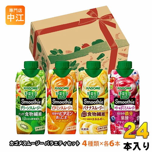 【一個あたり 192円(税込)】【商品説明】毎日をがんばるあなたにおいしいエールを届ける濃厚スムージー。 人気商品を詰め合わせた数量限定アソートセット。 ギフト プチギフト ギフトセット プレゼント 父の日 母の日 お歳暮 お中元などをお探しの方におすすめ。 ▼セット内容(各6本)▼・野菜生活100 スムージー グリーンスムージー・野菜生活100 スムージー バナナスムージー・野菜生活100 スムージー ビタミンスムージー・野菜生活100 スムージー ベリー&ざくろスムージー【名称および品名】果実・野菜ミックス飲料【保存方法】常温【製造者、販売者、又は輸入者】カゴメ株式会社※北海道・沖縄県・離島(一部)へのお届けは決済時に送料無料となっていても追加送料が必要です。 (コカ・コーラ直送を除く)北海道1個口 715円(税込)、沖縄県1個口 2420円(税込)※離島・一部地域は追加送料がかかる場合があります。 追加送料の詳細は注文確定メールにてご案内いたします。 ※本商品はご注文タイミングやご注文内容によっては、購入履歴からのご注文キャンセル、修正を受け付けることができない場合がございます。 変更・修正ができない場合は、メール、お電話にてご連絡をお願い致します。 ■ 法人・団体のお客様 大口購入のご相談承ります ■法人のお客様、各種団体のお客様で、まとまった数量でのご購入をご検討の際は、お気軽にご相談ください。 お客様のご要望に合わせて柔軟に対応させていただきます。 まずはお気軽にお問い合わせフォームよりご連絡ください。 送料無料 野菜飲料 果汁 ミックスジュース やさい かごめ スムージー 無添加 食物繊維 やさい生活 栄養 フルーツ くだもの パックジュース キャップ付き kagome 蓋つき 健康 美容 しっかりカリウム 1/2日分の野菜使用 乳使用 セット 限定box ギフトボックス アソート 詰め合わせ ケース まとめ買い カゴメ 野菜生活100 スムージー バラエティセット 330ml 紙パック 24本入 数量限定 野菜ジュース Smoothie 4,600 ~