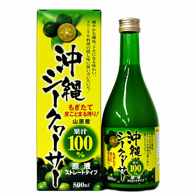 沖縄県産のシークヮーサーをギュッとまるごとしぼった、100%果汁です。 酸味が強く、スッキリした味わいです。 シークヮーサー果汁にはポリフェノールの一種であるノビレチンという成分が含まれています。 軽量なPETボトルタイプなので、本土への発送やお土産に便利です。 【調理方法】 ・さしみや焼き魚にかけて。 ・シークヮーサージュース:水で5?8倍に薄めてください。 お好みでハチミツや砂糖を加えてください。 ・泡盛や焼酎にレモン代わりに加えてください。 ・酢の物やサラダのドレッシングに。 関連商品はこちらシークワーサー 原液 沖縄県産100% フ...シークワーサー 原液 沖縄県産100% フ...シークワーサー 原液 沖縄県産100% フ...シークワーサー 原液 沖縄県産100% フ...シークワーサー 原液 沖縄県産100% フ...シークワーサー 原液 沖縄県産100% フ... シークワーサー 原液 沖縄県産100% フルーツジュース 甘味料不使用 オキナワ シークヮーサー ジュース ペットボトル 500ml×1本 ノビレチン クエン酸 ビタミンC オキハム 沖ハム 1,900 ~