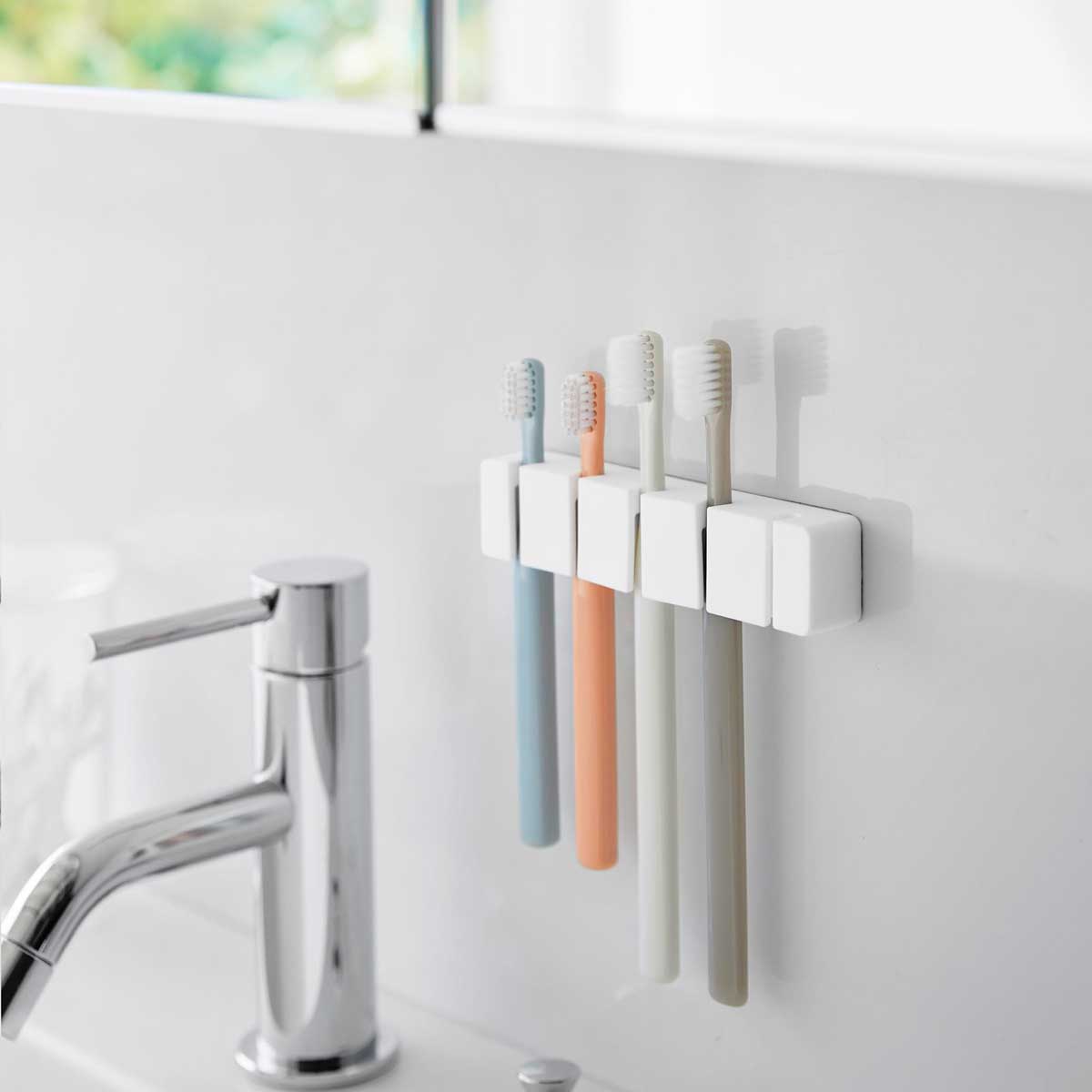 歯ブラシスタンド 山崎実業 正規品 tower タワー フィルムフックシリコーン歯ブラシホルダー 5連 歯ブラシを壁面収納 家族用 シリコン素材 壁面収納 歯ブラシホルダー 10052 ホワイト