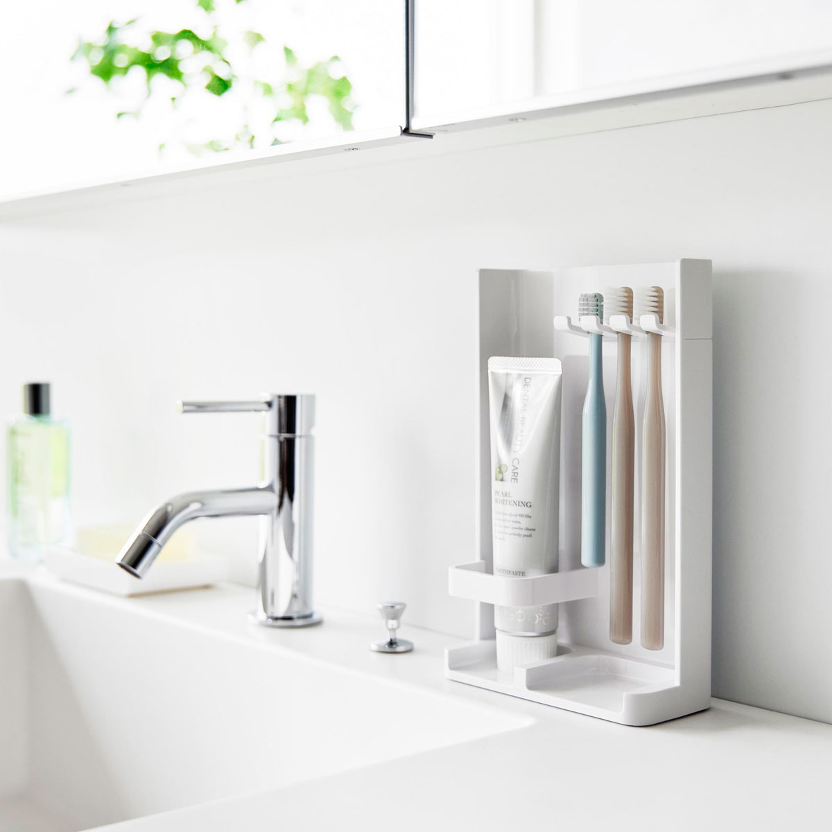 歯ブラシスタンド 山崎実業 正規品 tower タワー フィルムフック歯ブラシ&歯磨き用品収納セット 歯磨き用品をまとめて収納 便利グッズ 洗面アイテム 歯ブラシホルダー ホワイト