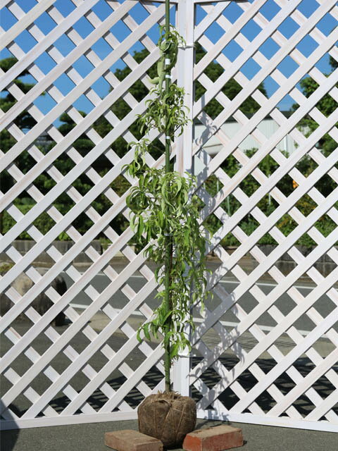 写真は見本品です。 苗木は26年1月13日に撮影しました。 (写真2枚目) その他の写真はそれぞれの季節のイメージです。 木の状態は季節により変化いたします。 261b-uヤマボウシ wt ヤマボウシ ミルキーウェイ 【分類】ミズキ科ヤマボウシ属の落葉中低木 【学名】Cornus kousa var.chinensis Milky Way 【原産】園芸種(中国原産) 【用途】庭木、公園樹 【開花期】5月〜7月 【結実期】10月 【最大樹高】2m〜5m 【栽培適地】東北中部以南 【ゾーン】5?8 ミルキーウェイは、直立性で花付きの良いヤマボウシで、初夏(5月〜7月)に白い一重の先のとがった4弁の花を咲かせます。 チャイニーズヤマボウシCornus kousa var.chinensis’ミルキーウェイ’は成長は遅く、がっちりした樹形になりやすい性質です。 強い日差しにも耐えます。 立性でまとまりやすい樹形を形成する性質があります。 単木でのシンボルツリーにもお勧めです。 下枝が広がらないようにするには早めに余分な枝をカットしてお好みの樹形にすることができます。 ●育て方● 植える場所は、日当たりから半日陰の水はけの良い所が適しています。 保水性のある肥沃な土壌を好みます。 夏場や直射のあたる場所では、地温の上昇と乾燥を防ぐことが大切です。 土壌に十分な腐葉土や堆肥等の有機物を入れておくことで、保水力を高め根を温度変化から保護することができます。 また、バークなどのマルチをすることで直射による地温の上昇を防ぎ、乾燥を防止することができます。 移植した年の夏には、特に注意が必要で、乾燥させると枯れ枝ができたり、枯れ死する場合があります。 具体的な対策としては、大きめの穴を掘って土の20%以上の腐葉土を混ぜて植えつけ、夏の晴天時には根元にバークや枯れ葉等のマルチをするほか、たっぷりと水を与えて乾燥させないように管理することが必要です。 花後の10月頃には、色鮮やかな赤い実がなり、食して楽しむこともできます。 特徴的な形をした実は熟すと赤くなり、果肉はマンゴーのようなオレンジ色をしています。 果肉は甘く、ジャムや果実酒としても加工できます。 害虫ではアブラムシ、毛虫などが発生することがあります。 多い場合は、殺虫剤の散布が必要です。