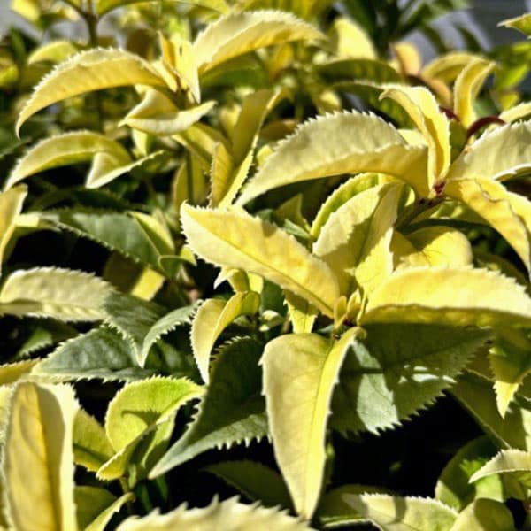 ウンナンオウバイ 雲南黄梅花木 庭木の苗/プリムローズジャスミン・斑入り2.5号ポット3株セット★入荷から日数が経ったためセール価格となりました。 商品の状態は画像と異なる場合があります。 ★ウンナンオウバイは中国産のモクセイ科の常緑低木。 プリムローズジャスミンとも呼ばれ、明るい黄斑が入ります。 周年きれいな葉色が楽しめるカラーリーフとして、寄せ植えやギャザリングにぴったりの品種です。 春一番に黄色い花を咲かせます。 日本のオウバイよりも花が大きく、遅咲き(春咲き)です。 枝が細く長く伸び、柳のような風情があります。 低い土手や石垣などの上部から下垂させると趣が出ます。 ジャスミンの仲間ですが、香りがありません。 幼木のうちは花は少ないですが、成長すると3〜4月頃に直径3〜4cmの黄色の花を咲かせます。 つる性なので、庭植えにすると2mほどに伸びます。 タイプ:モクセイ科ヤスミヌム(ソケイ)属の半耐寒性常緑低木(つる性)樹高(成長時):2m日照:日向むき開花:3〜4月用途:鉢植え耐寒性:マイナス5度まで栽培方法:水はけと日当たりのよい、肥沃な土で育てます。 やや耐寒性は弱いので、冬はマイナス5度以上で管理してください。 寒冷地では鉢植え栽培にして冬は屋内に取り込んでください。 栽培方法:日当たりのよい、なるべく強い北風のあたらない場所に植えてください。 写真はイメージです。