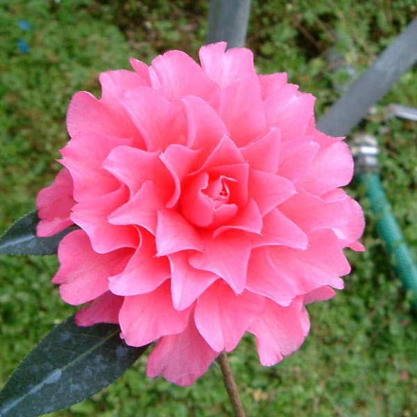 2月〜4月開花 唐椿とサルウィン椿の交配種 極大輪八重咲き花木 庭木の苗/ツバキ(椿):バリーヌーゼン6号鉢植えバリーヌーゼンはアメリカで作出された椿。 中国雲南省を原産とする大輪の椿(唐椿)の園芸品種「仏陀」と雲南省原産のサルウィンツバキの交配種です。 発色の良いピンクの極大輪八重咲きで、とても見応えがあります。 タイプ:ツバキ科ツバキ属の耐寒性常緑小高木樹高:2〜3m開花期:2〜4月植え付け適期:9〜10月、2〜4月栽培適地:東北地方以南日照:日向または半日陰(開花するようになると日向のほうが適しています)栽培方法日当たり、水はけの良い場所を好みます。 酸性土を好むので、植え付けの際に植え穴にピートモス、腐葉土またはブルーベリー栽培用土などを混ぜ込んでください。 2〜3月に寒肥として、油粕や骨粉を根元に施します。 剪定は花後すぐに行います。 葉芽の先に花がつくので、葉芽を残すように間引き剪定をします。 夏に花芽が分化するので、夏以降は枝を切らないようにしてください。 ツバキには4月と7月頃にチャドクガが発生しやすいので、殺虫剤で駆除してください。 6号(直径約18cm)鉢植えです。 樹高は多少変動します。 写真は成長・開花時のイメージです。