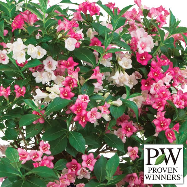 タニウツギ・1株でマルチカラー!コンパクトで花つきもよい新品種 PW花木 庭木の苗/[26年4月下旬予約]ワイゲラ:トリロジー5号鉢植えオオベニウツギやハコネウツギの仲間の落葉低木で、英名はワイゲラまたはワイゲリア(weigela)です。 5〜6月頃に愛らしい筒状ロウト形の花をたくさん咲かせます。 トリロジーは従来品種に比べて半分以下の樹高と非常にコンパクト。 そのため小スペースや鉢植えでも楽しめます。 花付きが良く、枝いっぱいに風鈴のような小花を咲かせます。 花は咲き初めは白い花弁でその後すぐに桃色、赤色と次々に変化し、1株で3色のカラーを楽しめます。 学名Weigela florida ’VUKOZGEMINIタイプスイカズラ科の耐寒性落葉低木栽培適地北海道南部以南樹高90-105cm株張90-105cm花期晩春耐寒温度約-30度まで耐暑性レベル★★★★★(ほぼお手入れなしできれいに育つ)日照日向むき→PWの耐暑性レベルとは?栽培方法:日当たりの良い場所を好みます。 肥沃で水はけのよい場所を好みますが、ほとんどの土壌で栽培できます。 植付けの際は堆肥や腐葉土を十分に土に混ぜて植え込み、よく水遣りしてください。 鉢植えもできます。 肥料は庭植えの場合はほとんど不要ですが、苗木農地は11〜12月と2〜3月に根元に腐葉土などを施してください。 鉢植えの場合は成長に応じて定期的に施します。 お届けする苗は5号(直径15cm)鉢植えです。 樹高や樹形は入荷時期により多少変動することがあります。 写真は成長・開花時のイメージです。 お届け時期により開花後の状態となる場合があります。 ※品種登録または品種登録出願済みの品種ですので、無許諾で苗木等を増殖して販売することはできません。 ■4月下旬頃のお届けの予約販売です。 ・注文締切日:2026年4月13日(月)午前7時・別々のご注文をおまとめすることはできません。 送料はそれぞれにかかります。 ・お届け日は4月14日以降にメールでご案内します。 お届け日指定はお受けできませんが、曜日・時間帯指定は承ります。 (受信できるアドレスでご注文ください)・品種によりお届け時期の変更や、お届けできなくなる場合があります。 [26年4月下旬予約]ワイゲラ:トリロジー5号鉢植えの栽培ガイドPW Japan独自の指標:耐暑性レベルについて 花木 庭木の苗/[26年4月下旬予約]ワイゲラ:トリロジー5号鉢植え 3,391 ~