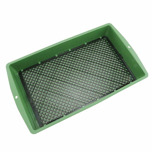 【用途】フルイ。 【機能・特長】中の網をスライドさせるだけで、簡単に目の大きさを変更できます。 目の大きさを変えたい場合でも、わざわざ替アミを持ち運ぶ必要がありません。 全体が樹脂で出来ているため非常に軽く、また錆びの心配もありません。 樹脂製の為、金属フルイの様な甲高い音がしづらく、住宅街やマンションのベランダなどの集合住宅でも音が響きにくい。 樹脂の為、汚れた場合でも水洗いが可能です。 【材質】本体:ポリプロピレン。 目合サイズ:4mmと10mm。 重さ:約630g。 外形サイズ:横560mm縦320mm高85mm。 内径サイズ:横505mm縦295高65mm。 本来の用途以外に使用しないでください。