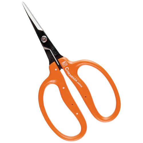 果実の摘果作業、野菜(玉葱・きゅうりなど)の収穫、松の手入れ、太物、厚物に適した長刃。 ●【用途】果実の摘果作業、野菜(玉葱・きゅうりなど)の収穫、松の手入れなど。 【特徴・機能】太物、厚物に適した長刃。 本職園芸用です。 ●チカマサの青果鋏をDCMでは販売しております。 その他の園芸用品も多数取扱っております。 ●全長(約):210mm 。 ●重量(約):140g 。 ●刃長:63mm。 ●刃:高級炭素刃物工具鋼 。 ●柄:鋼板製 プラスチックコーティング。 ●1.刃先を顔や肌、人に向けないで下さい。 ●2.ポケットに入れておきますと、鋭い刃先で人を傷つける危険があります。 ●3.ご使用中は目に付くところに置いて安全にご注意下さい。 ●4.幼児や子供の手の届かない安全なところに保管して下さい。