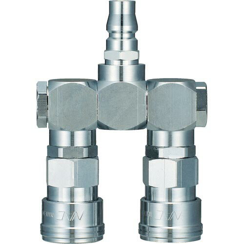 特長:一つの配管口より複数のエアの取り出しが可能。 一般カップリングと互換性あり。 2分岐カップリングタイプ。 仕様:最高使用圧力(MPa):1.5分岐数:2取入口:プラグ使用流体:空気使用温度範囲:-5〜60℃材質/仕上:本体:鋼鉄+ニッケルメッキ、アルミニウムシールゴム:ニトリルゴム(NBR)注意:一般カップリングと互換性があります。 ●代表画像について 商品によっては、代表画像を使用している場合がございます。 商品のカラー、サイズなどが異なる商品をイメージ画像として 使用させて頂いている場合がございます。 必ず、商品の品番と仕様をご確認のうえ、ご注文お願いいたいます。 ●北海道・沖縄・離島・一部地域の送料について 別途追加で送料がかかる場合がございます。 送料がかかる場合は、メールにて送料をご連絡させて頂き、 お客様にご了承頂いてからの手配となります。 ●お買上げ明細書の廃止について 当店では、個人情報保護と環境保護の観点から同封を廃止しております。 お買上げ明細書が必要な場合は、備考欄に「お買上げ明細必要」と 記載お願いいたします。 当店からの出荷の場合は、同封にて発送させて頂きます。 (※メーカー直送の場合は、PDFデータをメールさせて頂きます。 ) 注意事項 ※商品名に【2個セット】等、数量の明記がない場合は1個での販売となります。