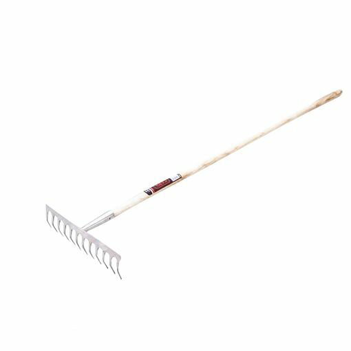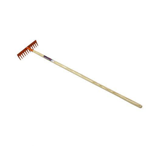【用途】 レーキ。 【特徴】 整地・集草作業用です。 刃先部R処理で対象物への喰いこみ抜群です。 刃部の塗装は粉体塗装処理で行っていますので、塗装がはがれにくくなっています。 【仕様】 ●14本爪。 ●全長:約1540mm。 ●柄長:約1350mm。 【材質】 ●頭部:刃物鋼。 ●柄部:木。 【注意事項・その他】 本来の用途以外には使用しないで下さい。 使用前には本体あるいは部品にがたつき・緩みが無いことを確認してください。 使用の際には保護めがね・手袋などを着用してください。 使用後は汚れを取り、子供の手の届かない安全な場所に保管してください。