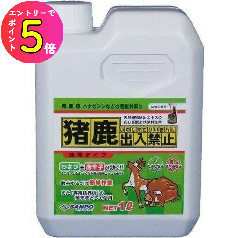 ●害獣対策に。 ●わさび、唐辛子等の13種類の天然植物から抽出した忌避剤。 ●強烈な刺激臭植物エキスにより持続的に効果を発揮します。 ●主成分が植物エキスなので環境に安心・安全です。 ●スプレータイプの詰替え用または噴霧器に入れて使用などマルチに活躍。 ●内容量:1L関連商品[エントリーでP+5倍] ヘビ マムシ ハブ ヤマカガシ トカゲ 駆除...[エントリーでP+5倍] アフティ イタチ コウモリ ハクビシン アラ...[エントリーでP+5倍] ハト除け 鳩除け 鳥除け 巣 糞 フン 忌避...2,620円2,860円2,840円[エントリーでP+5倍] 農薬 住友化学 スミチオン乳剤 500ml...[エントリーでP+5倍] 【動物 虫が本能的に嫌うニオイで追い払う】効...[エントリーでP+5倍] 猪 イノシシ 鹿 シカ 猿 サル ハクビシン...2,460円2,080円3,690円[エントリーでP+5倍] 園芸 ガーデニング 活力剤キング 1Kg 国...[エントリーでP+5倍] ムカデ ゲジゲジ 虫除け ムカデニゲール 分...[エントリーでP+5倍] 猫除け ネコ除け 忌避 雨に強い!強力ネコニ...2,630円1,870円1,730円 [エントリーでP+5倍] 猪 イノシシ 鹿 シカ 猿 サル ハクビシン アライグマ 小動物 害獣対策 害獣除け 三宝化成 猪鹿出入禁止 液体タイプ 1L 獣害 2,650 ~