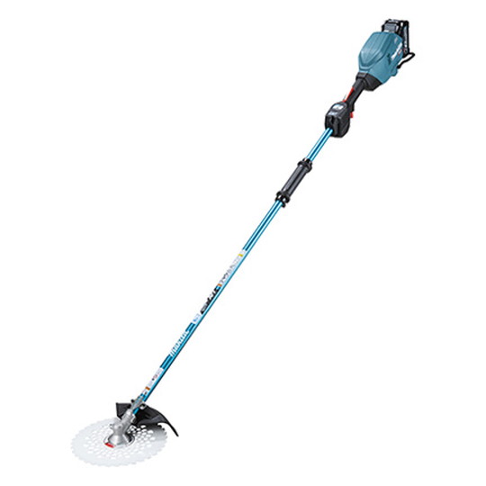 【用途】草刈り作業。 【機能・特長】軽量・パワフル・低騒音、充電式なので、排ガスゼロ、燃料ゼロ。 アウタロータBLモータを先端に配置、外側のロータが回転するので、極めて高トルクです。 ギヤを使用せず、ロータで刃物を直接回転させるダイレクトドライブで、またキックバック(跳ね返り)を起こした時に発生する、急激な回転数の低下を検知し、刃物を素早く停止します。 雨の中でも運転可能な防水設計、防滴・防じん「ウェットガード」&防水保護等級「IPX4」により実現しています。 楽らくロングドライブモード+無段変速でより長時間の作業が行え、全ての操作が手元で可能、「チップソー・樹脂刃」と「ナイロンコード」に最適な回転数を設定可能です。 電源(V):直流36(40Vmax)。 本体のみ(バッテリ・充電器別売)。 Uハンドル。 草刈刃(mm):255。 回転数(min-1)[回転/分]:高速0〜6500・中速0〜5300・低速0〜3500。 回転数(min-1)[回転/分]:楽らくモード(自動変速):3500〜6500。 1充電連続運転時間(金属刃/無負荷時/目安)(4.0Ah):高速約1時間・中速約1時間45分・低速約4時間5分※DCホワイトチップソー使用時。 本機寸法(mm):長さ1815X幅660X高さ450※チップソー(刈刃)・飛散防護カバー含む・質量(kg):4.4※バッテリ含む、チップソー(刈刃)、飛散防護カバー、肩掛けバンド等を除く。 安全にお使いいただくために、本機添付の取扱説明書をよくお読みください。 連続使用時間(目安)の数値は参考値です。 バッテリの充電状態や作業条件によって異なります。 本体のみ、バッテリ・充電器別売。