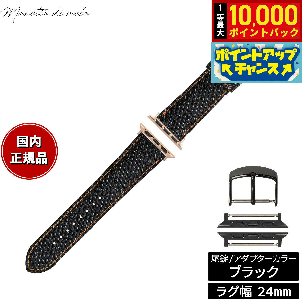 【抽選で最大10000ptバック!お買物マラソン限定!】マネッタ ディ メーラ Manetta di mela アップルウォッチ Apple Watch 替えバンド ベルト メンズ レディース 岡山デニム 24mm ノンウォッシュ オレンジステッチ/ブラック EDA-IOA24 7,150 ~