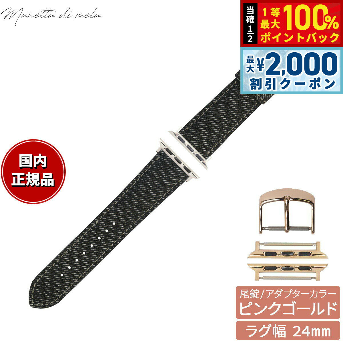 【15日限定!2000円OFFクーポン&抽選で最大10000ptバック】マネッタ ディ メーラ Manetta di mela アップルウォッチ Apple Watch 替えバンド ベルト メンズ レディース 岡山デニム 24mm ブラックデニム グレーステッチ/ピンクゴールド EDA-AGP24 7,150 ~