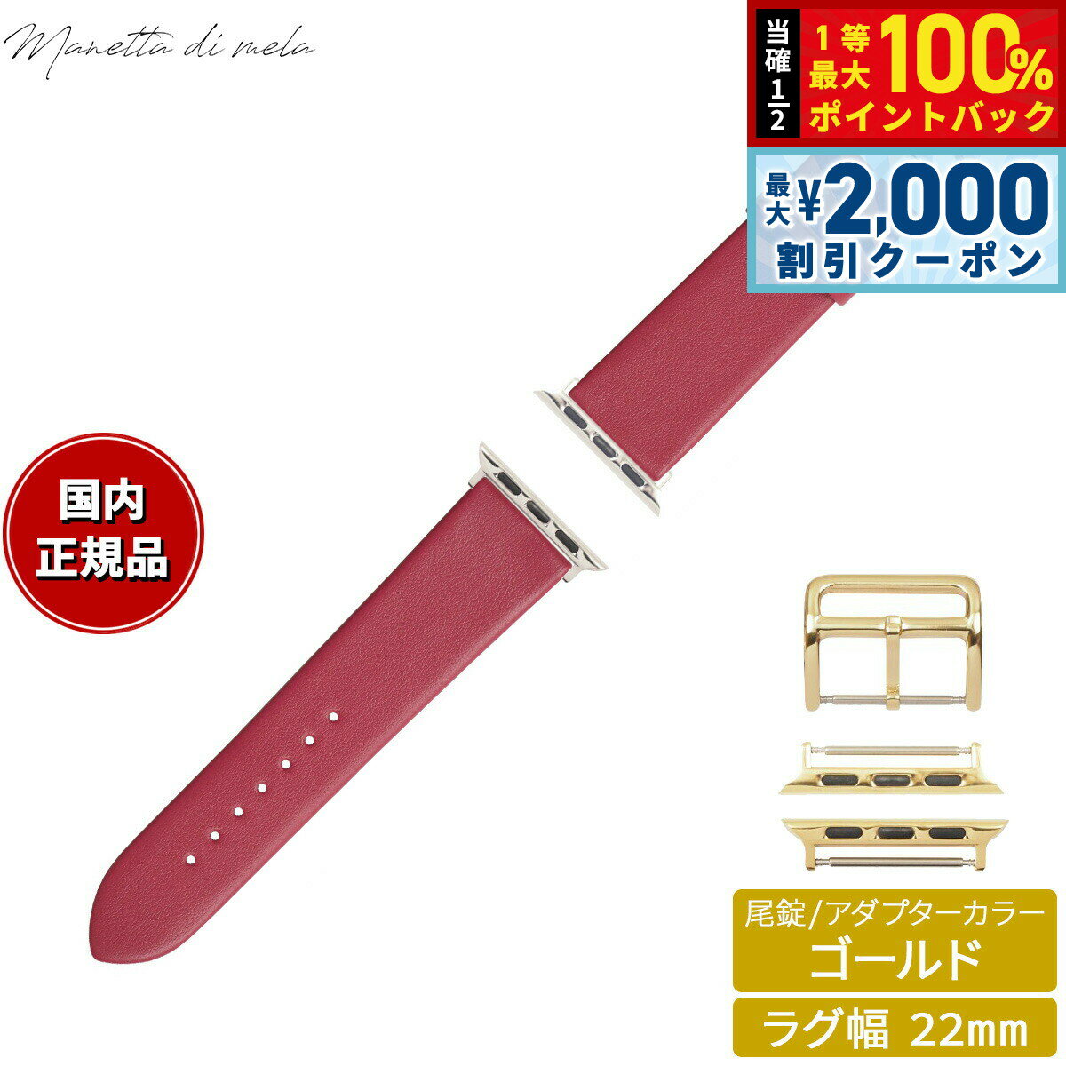 【15日限定!2000円OFFクーポン&抽選で最大10000ptバック】マネッタ ディ メーラ Manetta di mela アップルウォッチ Apple Watch 替えバンド ベルト メンズ レディース トレソー イタリアレザー 22mm マゼンタピンク/ゴールド EFA-P-G22 7,150 ~