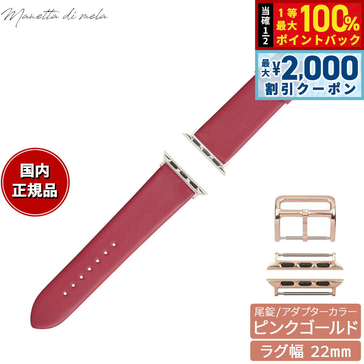 【15日限定!2000円OFFクーポン&抽選で最大10000ptバック】マネッタ ディ メーラ Manetta di mela アップルウォッチ Apple Watch 替えバンド ベルト メンズ レディース トレソー イタリアレザー 22mm マゼンタピンク/ピンクゴールド EFA-P-P22 7,150 ~