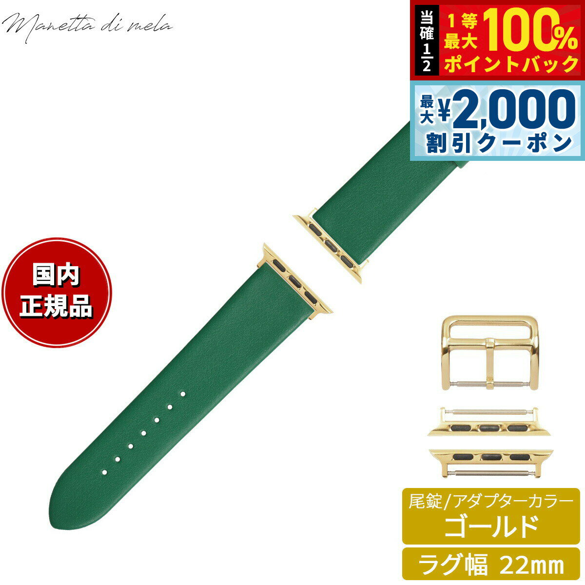 【15日限定!2000円OFFクーポン&抽選で最大10000ptバック】マネッタ ディ メーラ Manetta di mela アップルウォッチ Apple Watch 替えバンド ベルト メンズ レディース トレソー イタリアレザー 22mm エバーグリーン/ゴールド EFA-G-G22 7,150 ~