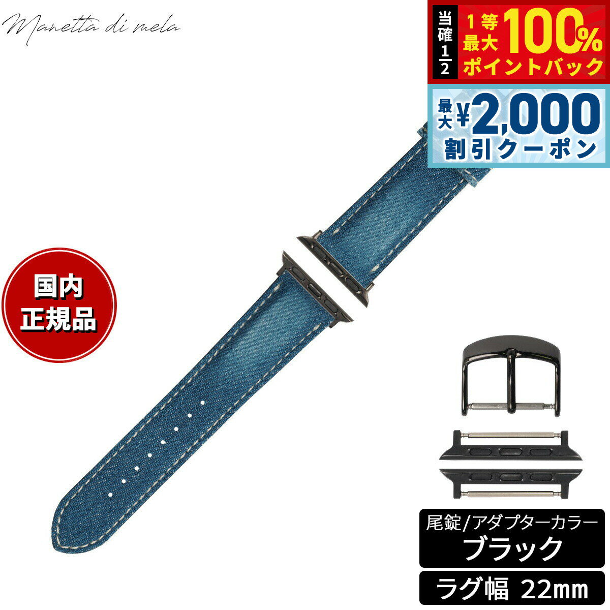 【15日限定!2000円OFFクーポン&抽選で最大10000ptバック】マネッタ ディ メーラ Manetta di mela アップルウォッチ Apple Watch 替えバンド ベルト メンズ レディース 岡山デニム 22mm クラッシュ ホワイトステッチ/ブラック EDCA-IWA22 8,250 ~