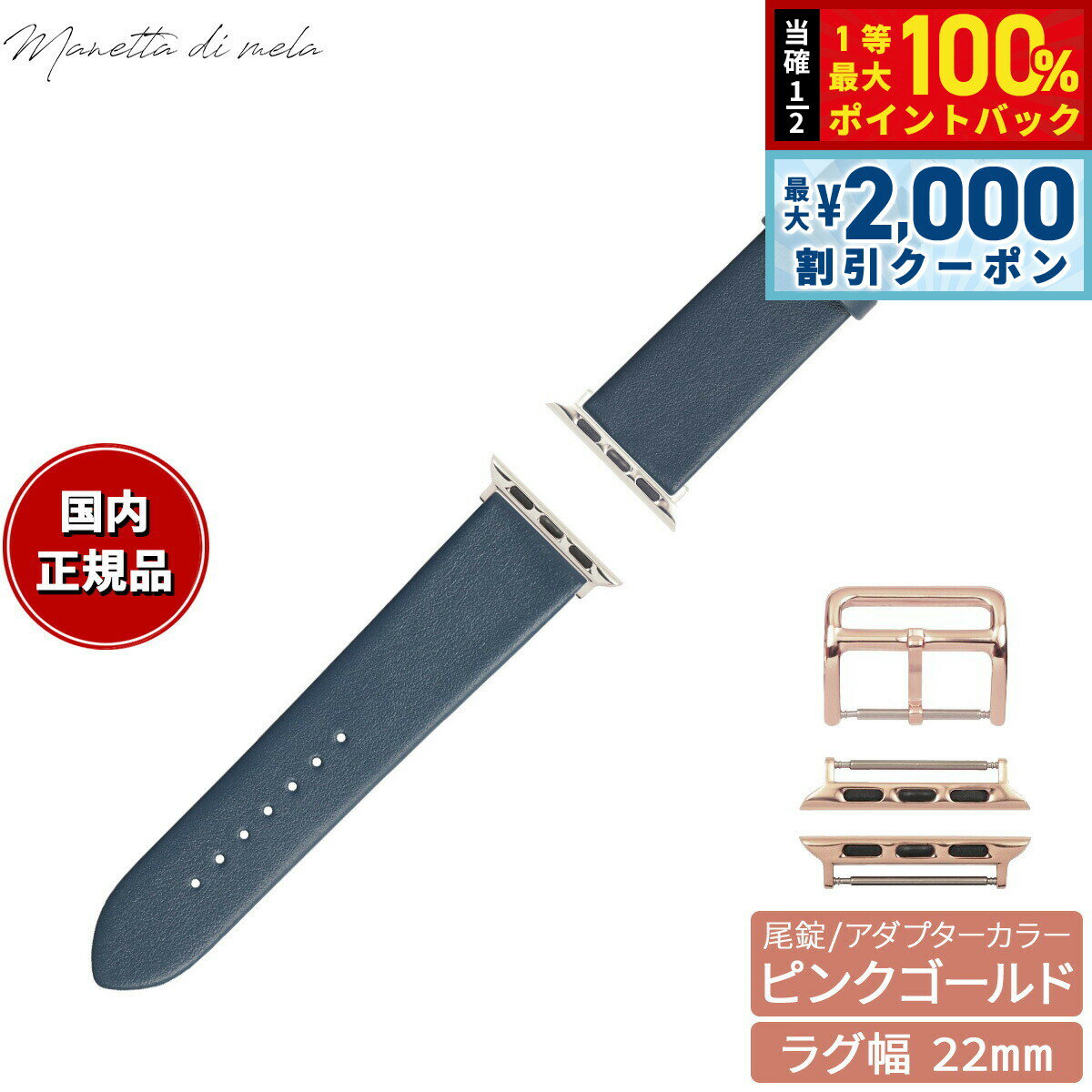 【15日限定!2000円OFFクーポン&抽選で最大10000ptバック】マネッタ ディ メーラ Manetta di mela アップルウォッチ Apple Watch 替えバンド ベルト メンズ レディース トレソー イタリアレザー 22mm ブルーグレー/ピンクゴールド EFA-BL-P22 7,150 ~