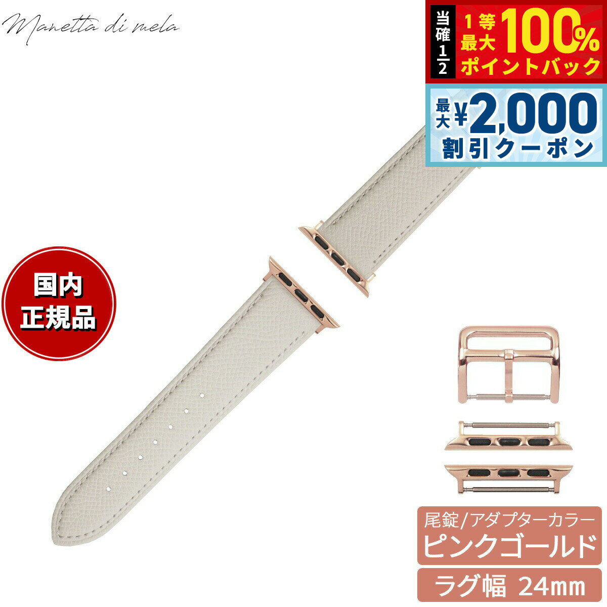 【15日限定!2000円OFFクーポン&抽選で最大10000ptバック】マネッタ ディ メーラ Manetta di mela アップルウォッチ Apple Watch 替えバンド ベルト メンズ レディース ワープロラックスカーフレザー 24mm シルキーホワイト/ピンクゴールド EWB-WH-P24 10,450 ~