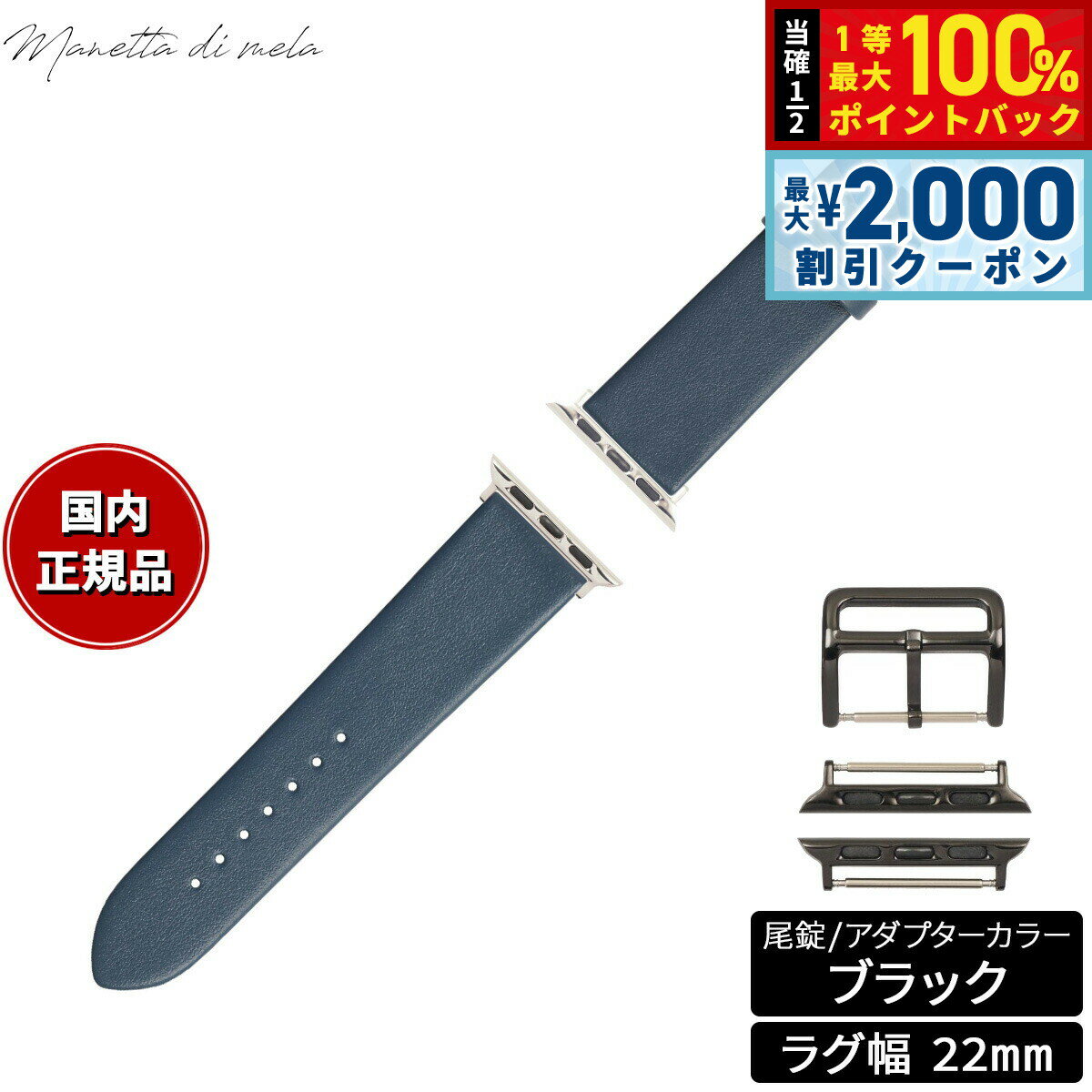 【15日限定!2000円OFFクーポン&抽選で最大10000ptバック】マネッタ ディ メーラ Manetta di mela アップルウォッチ Apple Watch 替えバンド ベルト メンズ レディース トレソー イタリアレザー 22mm ブルーグレー/ブラック EFA-BL-A22 7,150 ~