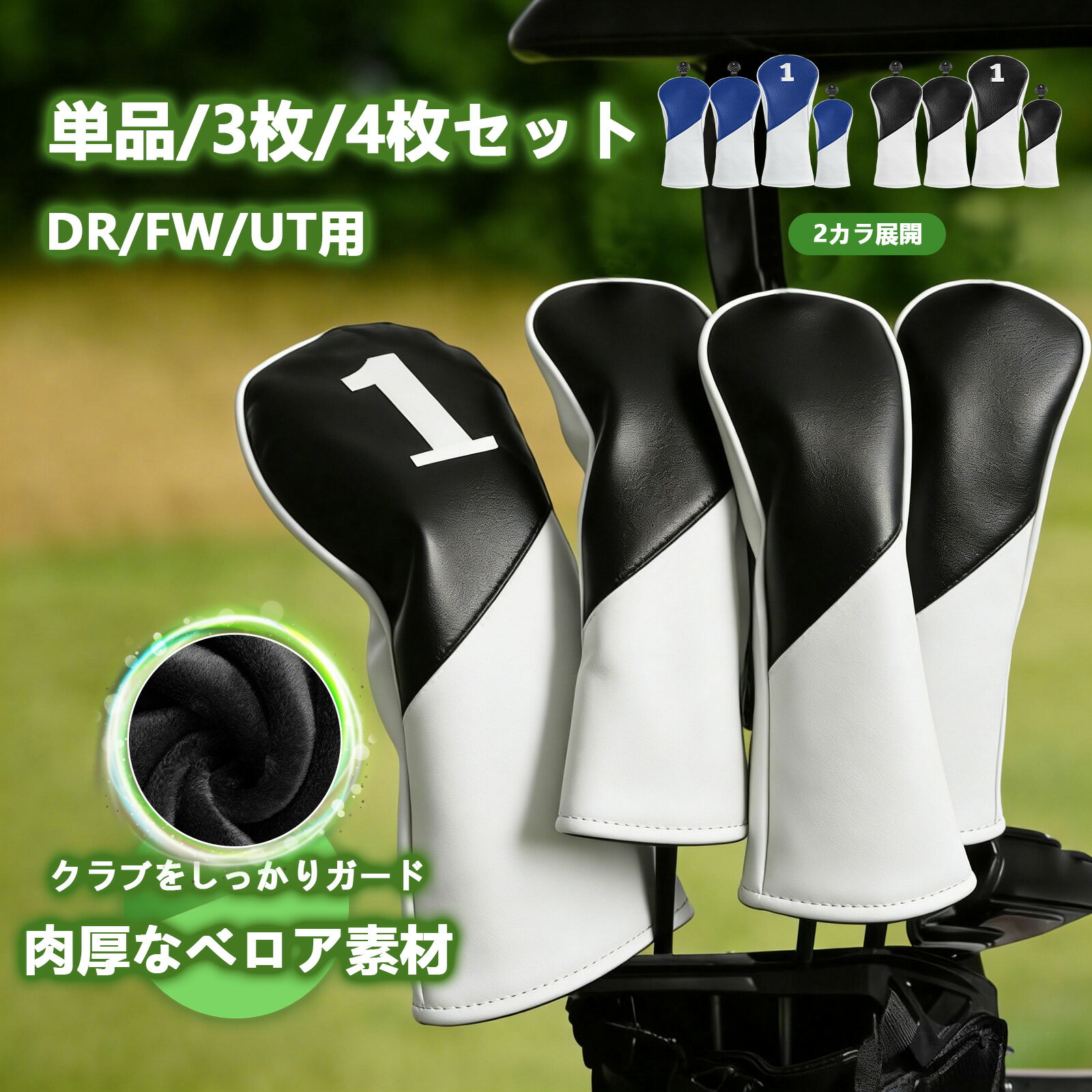 ゴルフヘッドカバー 高級PUレザー 単品/3枚/4枚セット 軽量・耐久性・撥水性・防塵性・耐摩耗 440cc 460cc用 ヘッド保護カバー ドライバー フェアウェイウッド ユーティリティー DR FW UTカバー 変換ダグ付き 1,680 ~