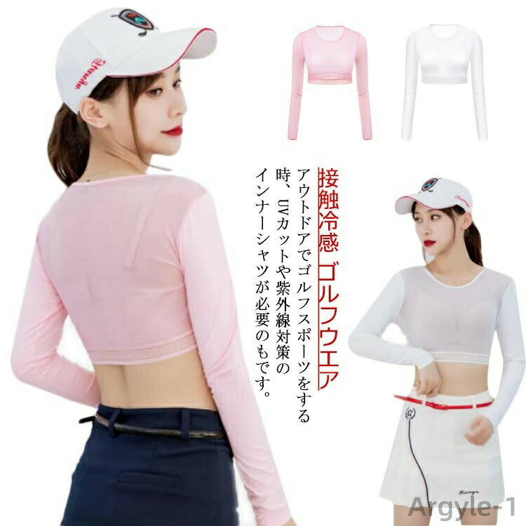 【送料無料】接触冷感 速乾 吸汗 ゴルフウェア レディース 日焼け対策 スポーツシャツ 夏 UVカット ひんやり ストレッチ インナーシャツ 長袖 4,680 ~