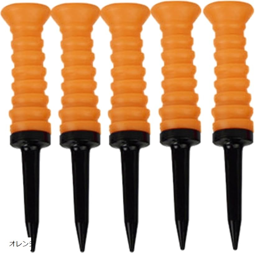 ゴルフ ティー ロングティー 5本セット ラバー製 曲がるティー 置き型 視認性カラー 練習用 ドライバー向け 5色展開 ゴム製 (オレンジ, 83mm) 1,580 ~